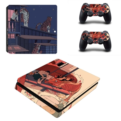 Cartoon decal skin for PS4 Slim Console and two controllers