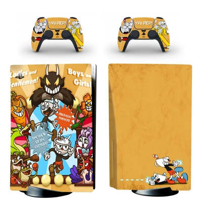 Cuphead decal skin for PS5 Disc Edition Console and two Controllers