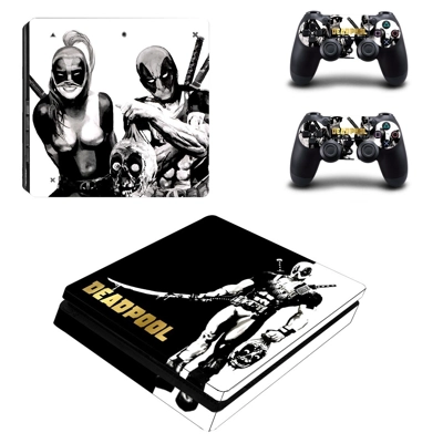Deadpool decal skin for PS4 Slim Console and two controllers