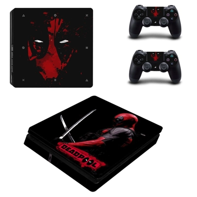 Deadpool decal skin for PS4 Slim Console and two controllers