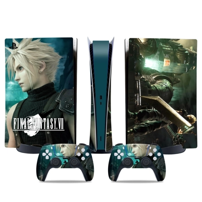 Final Fantasy 7 decal skin for PS5 Digital Console and two Controllers