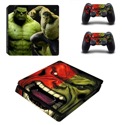 Green Hulk decal skin for PS4 Slim Console and two controllers