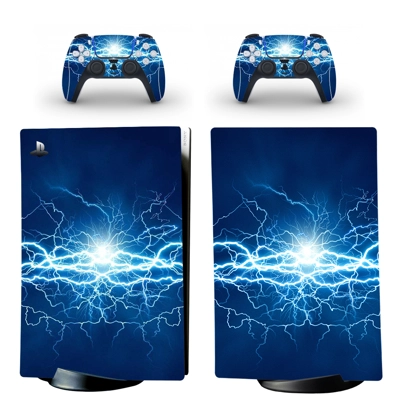 Lightning decal skin for PS5 Digital Console and two Controllers