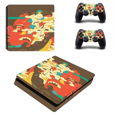 Painted clipart decal skin for PS4 Slim Console and two controllers