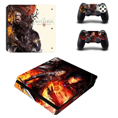 The Witcher wild hunt decal skin for PS4 Slim Console and two controllers