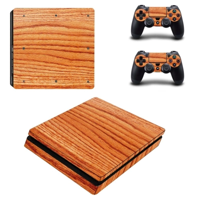 Wooden board decal skin for PS4 Slim Console and two controllers